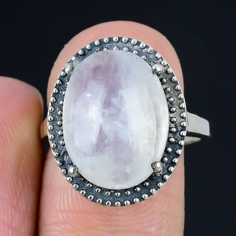 Rainbow Moonstone Gemstone Sterling Silver Band Promise Friend Gift Ring US 8