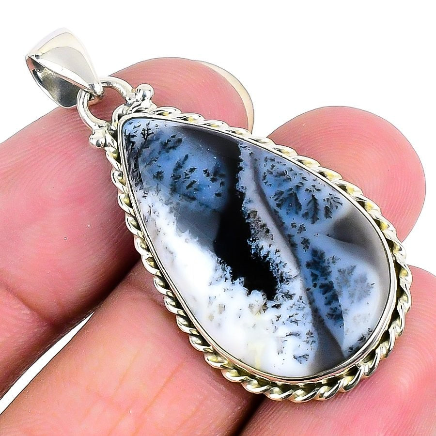 Dendrite Opal Stone 925 Silver Boho Friendship Day Engagement Wedding Pendant