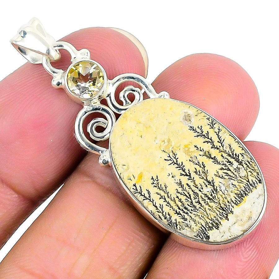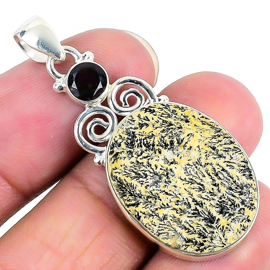 Natural Dendrite Opal Trendy Elegant Ethnic Artisan Pendant Jewelry Solid Silver