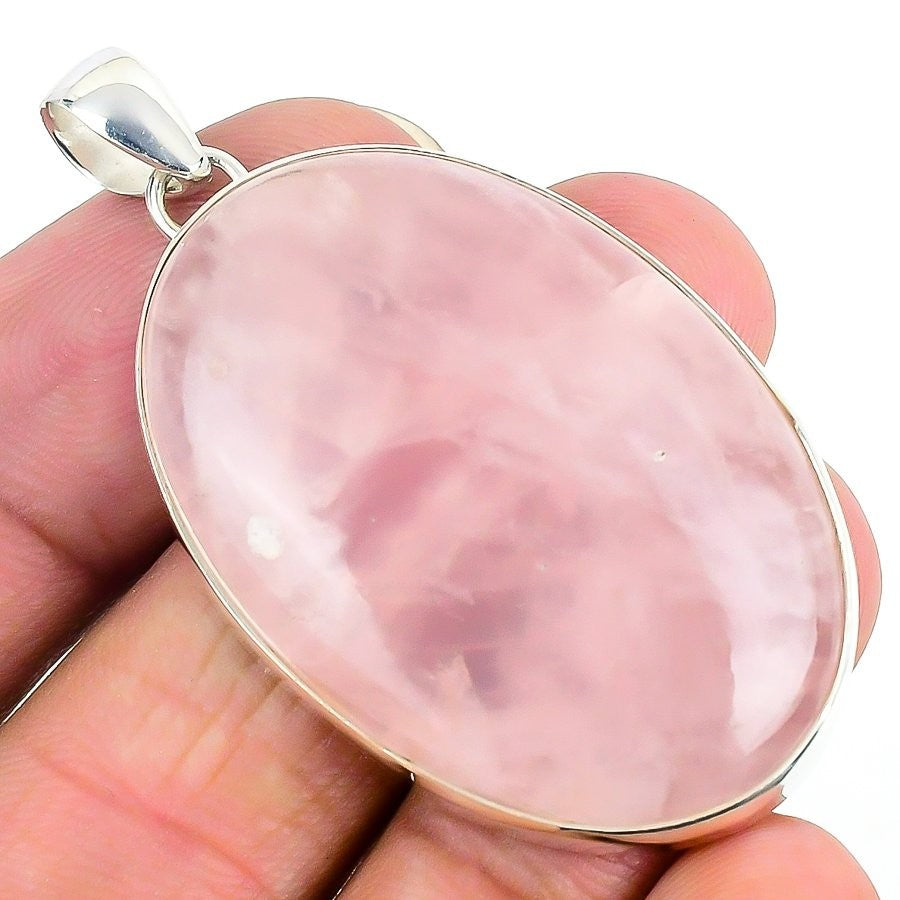 Natural Rose Quartz 925 Sterling Silver Sister Engagement Heart Chakra Pendant