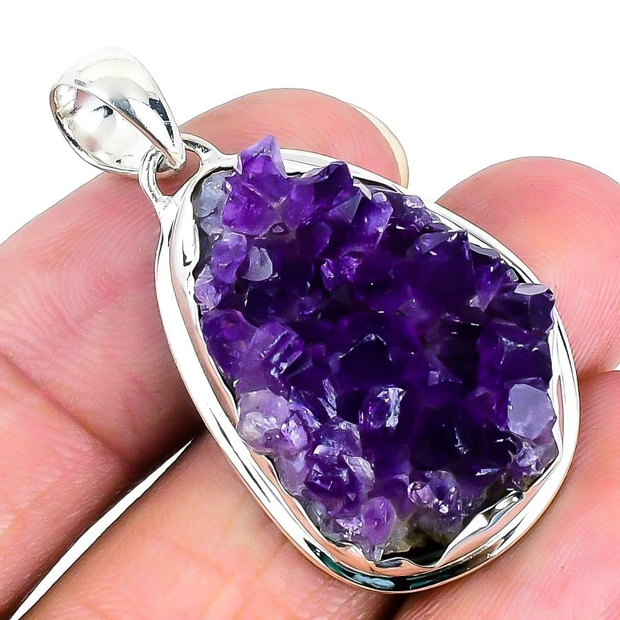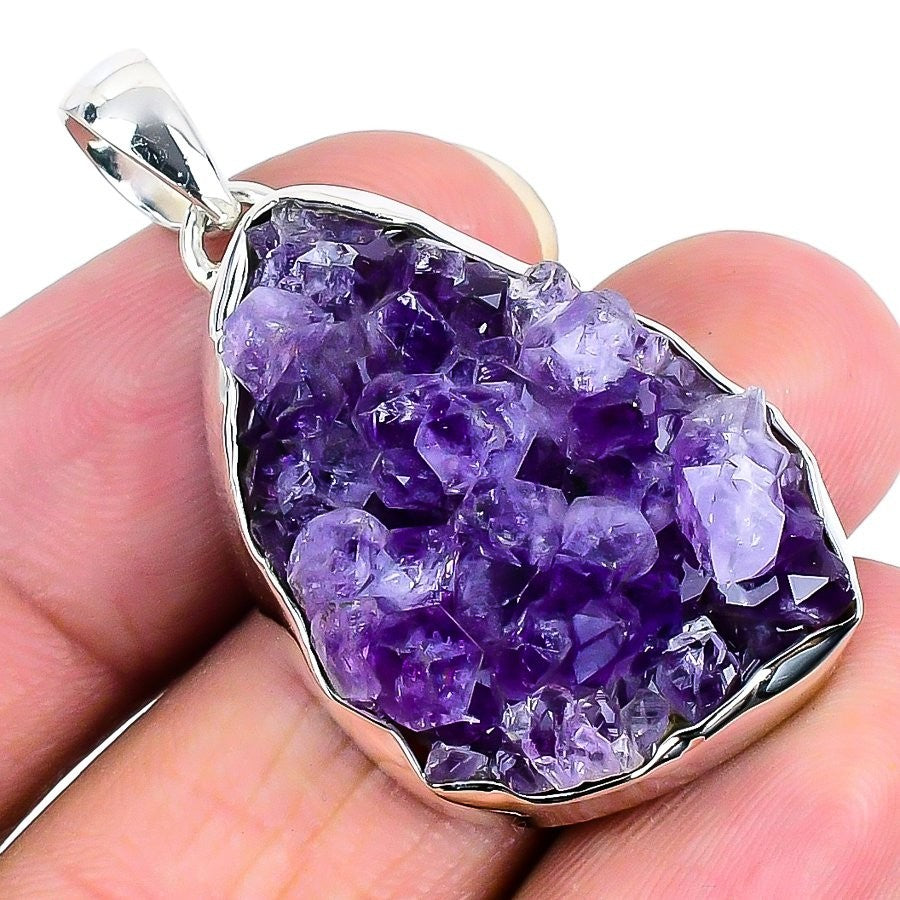 Natural Amethyst Druzy 925 Silver Bezel Daughter Sisters Day Engagement Pendant