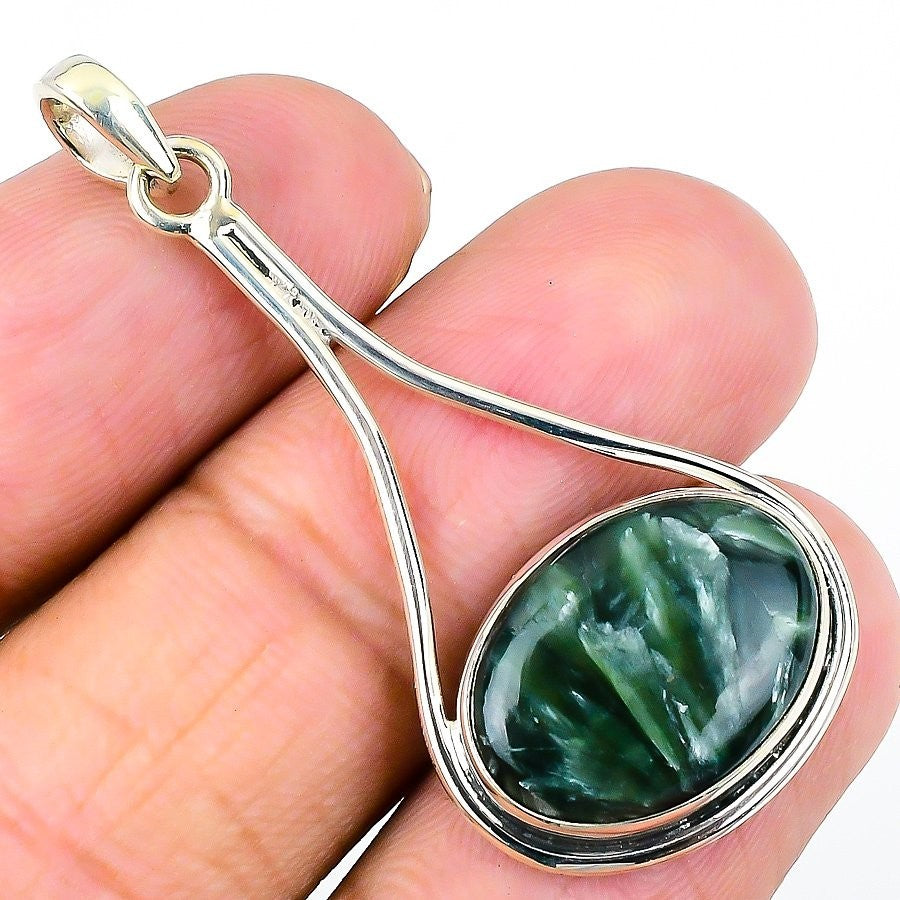 Friendship Day Deal Seraphinite Stone Sterling Silver Daughter Artisan Pendant