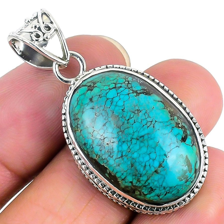 Natural Tibetan Turquoise Solid Sterling Silver Unique Daughter Ethnic Pendant