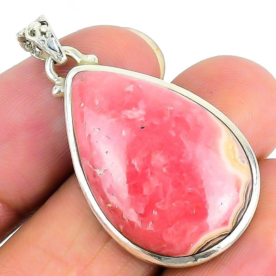Natural Rhodochrosite Solid Silver Engagement Bezel Anniversary Birthday Pendant