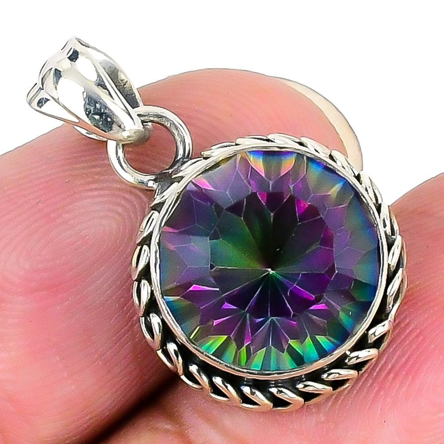 Sisters Day Deal Natural Rainbow Mystic Topaz 925 Silver Daughter Trendy Pendant
