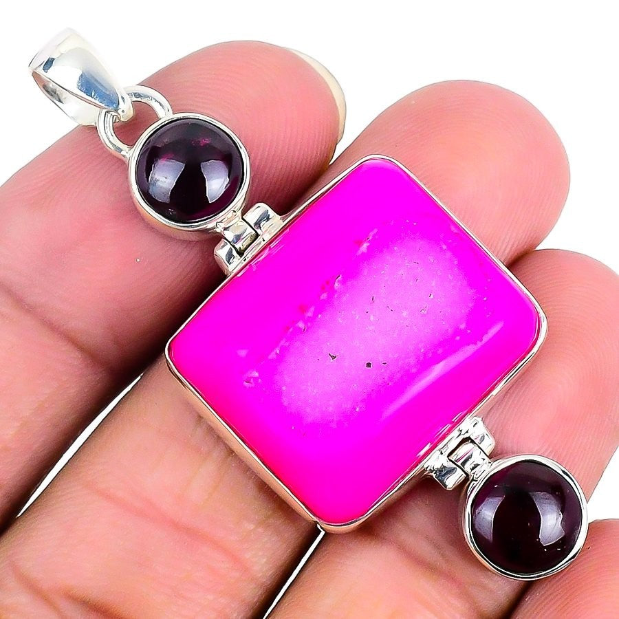 Pink Druzy Gemstone Solid Silver Handcrafted Friend Gift Sister Pendant Jewelry