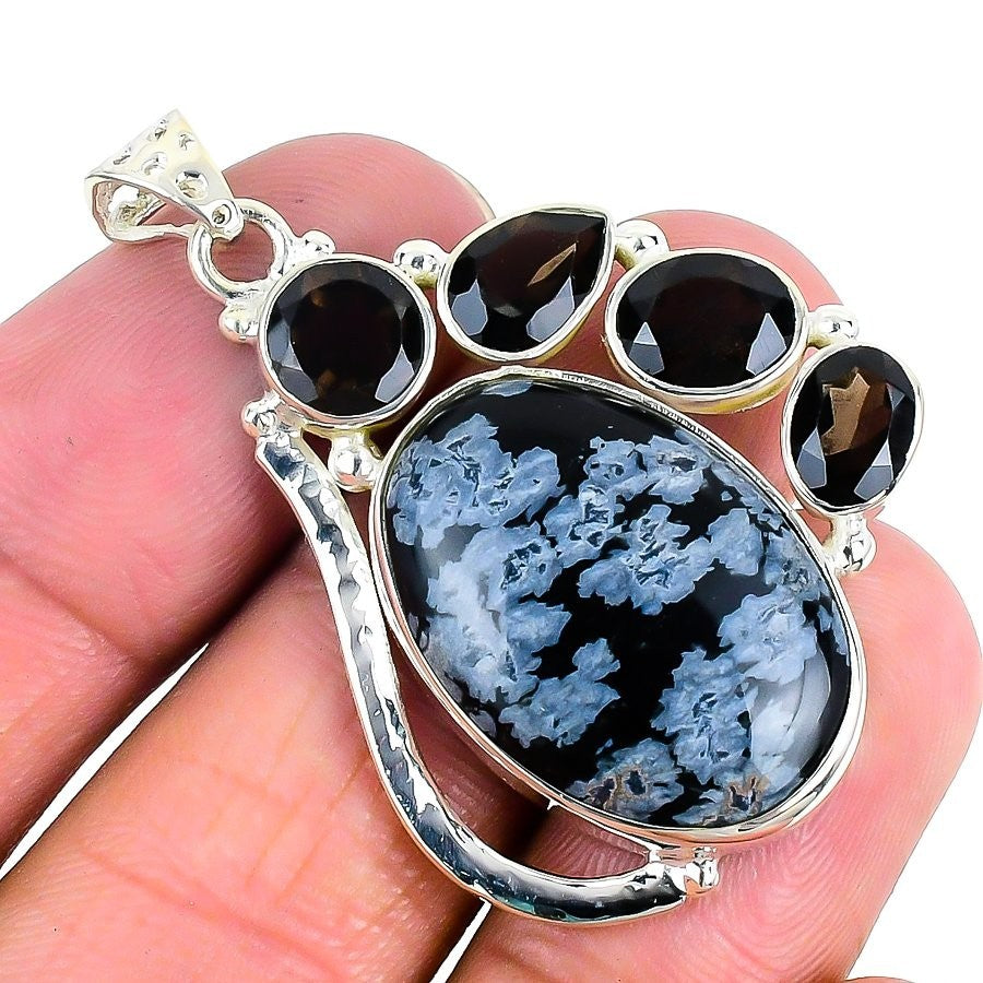 Snoflake Obsidian Stone 925�Solid�Silver Bezel Engagement Art Deco Wife Pendant