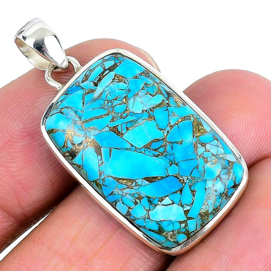 Natural Copper Blue Turquoise Solid Sterling Silver Friend Gift Pendant Jewelry