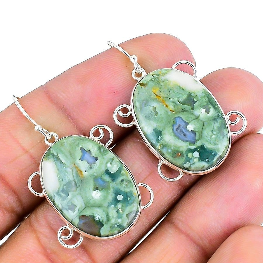 Natural Ocean Jasper Stud Post Sisters Day Earrings Jewelry 925 Sterling Silver