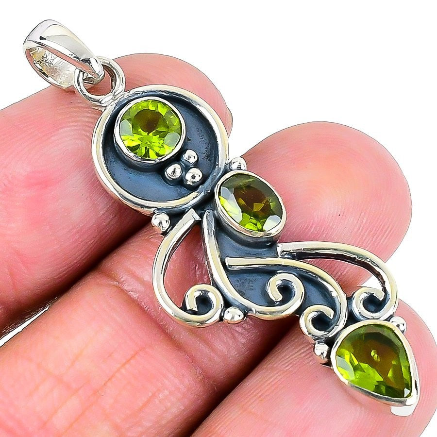 Peridot Stone Birthday Best Sisters Gift Daughter Boho Pendant 925�Solid�Silver