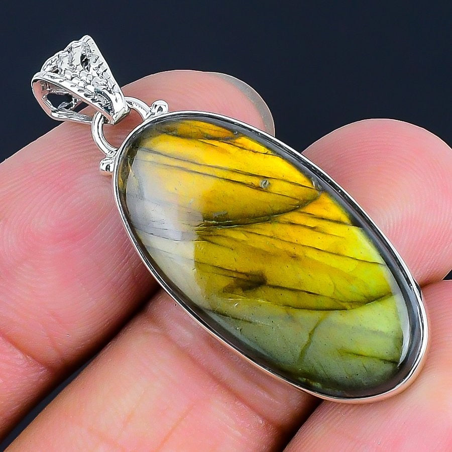 Labradorite Stone Bezel Engagement Sister Birthday Pendant Jewelry Solid Silver