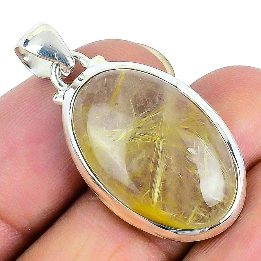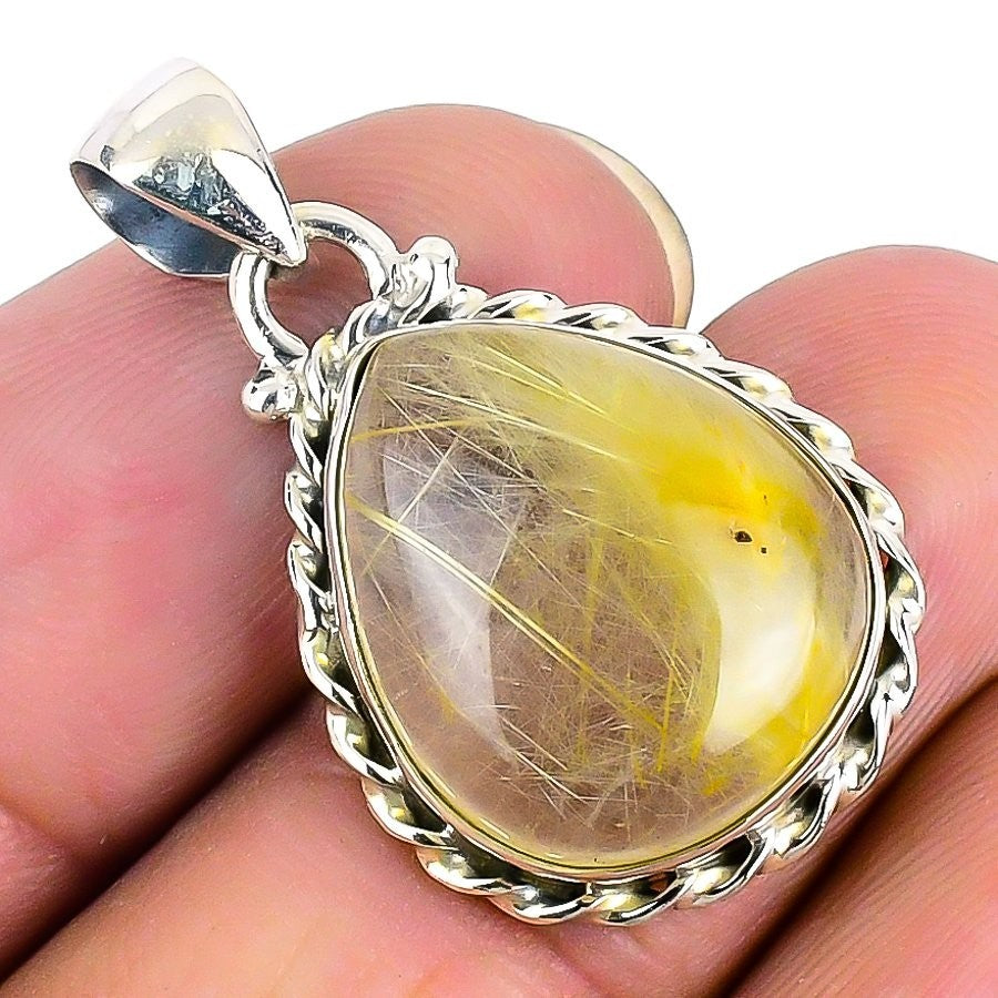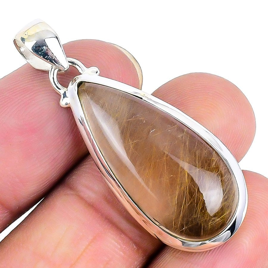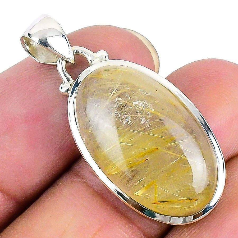 Golden Rutile Gemstone Bezel Engagement Wedding Mother Boho Pendant Solid Silver