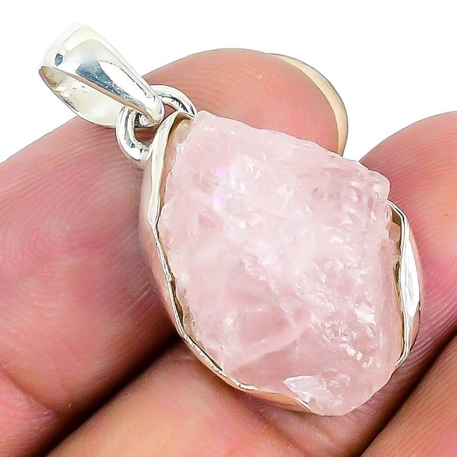 Rose Quartz Gemstone Heart Chakra Sister Bezel Pendant Jewelry Sterling Silver