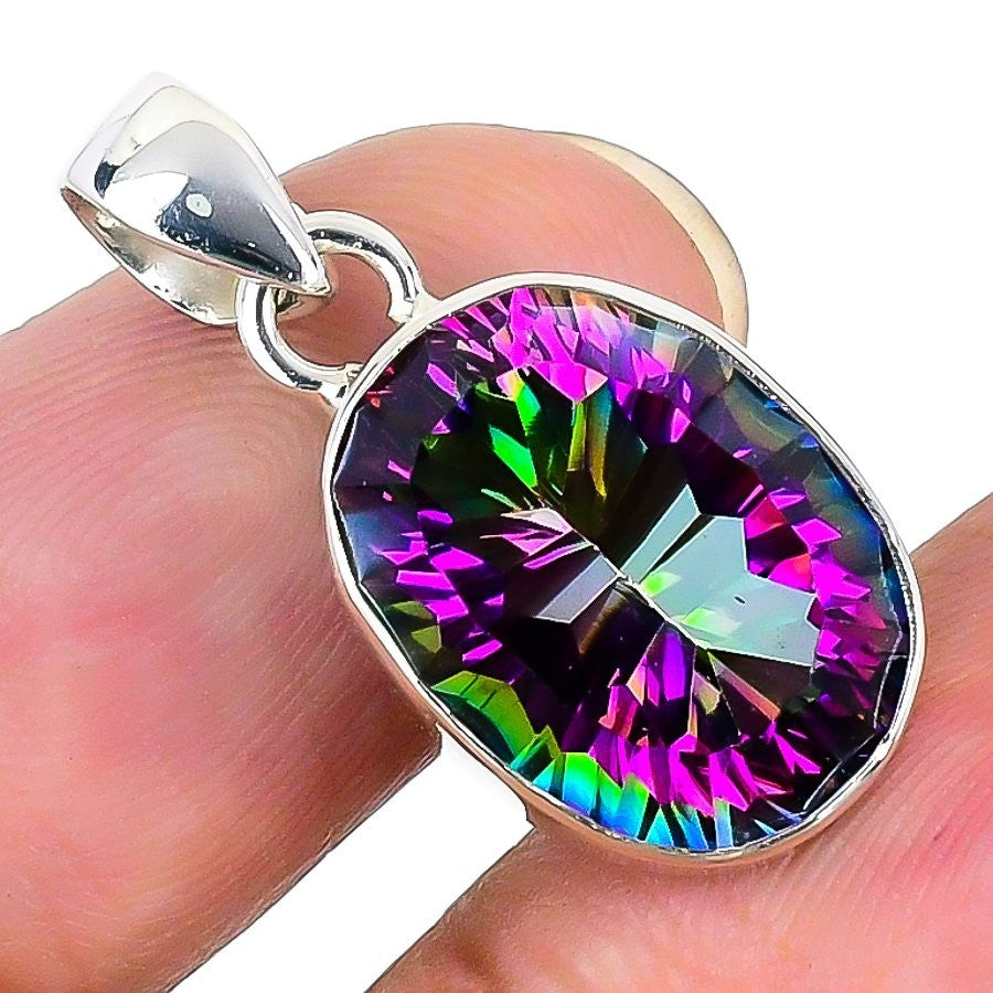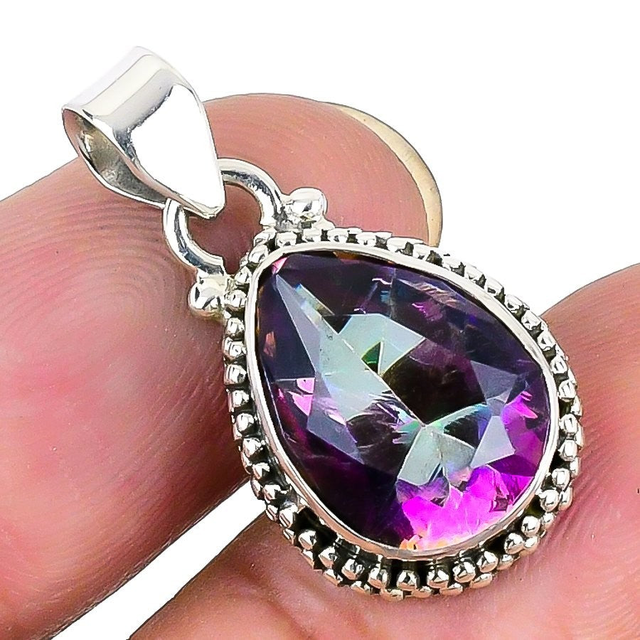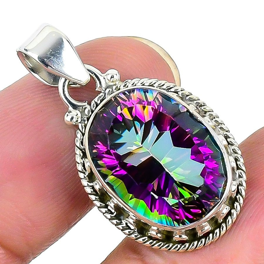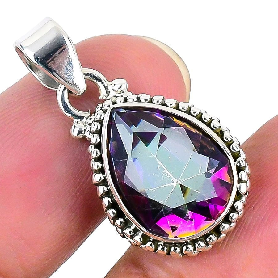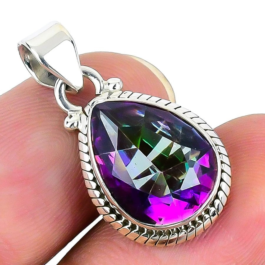 Natural Rainbow Mystic Topaz 925 Sterling Silver Daughter Unique Pendant Jewelry