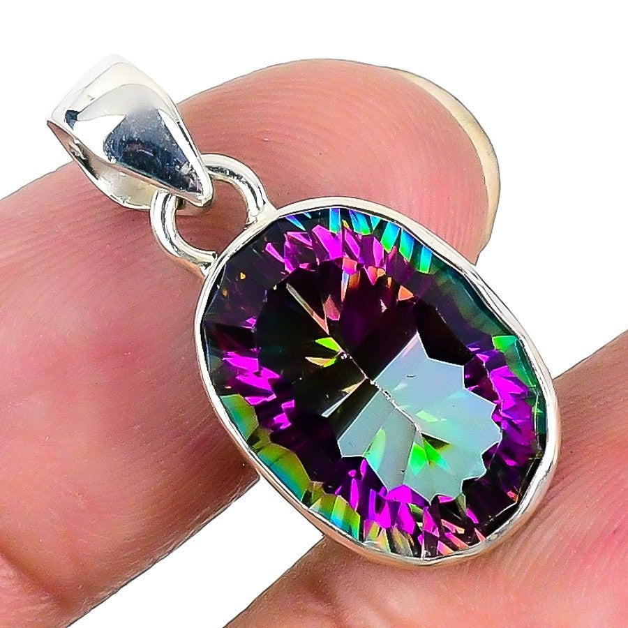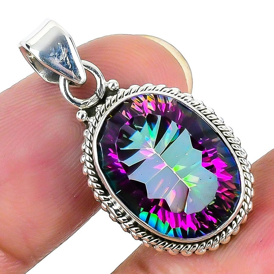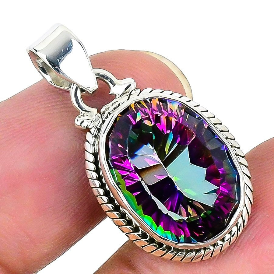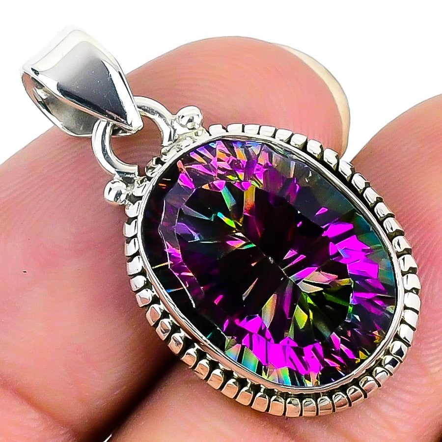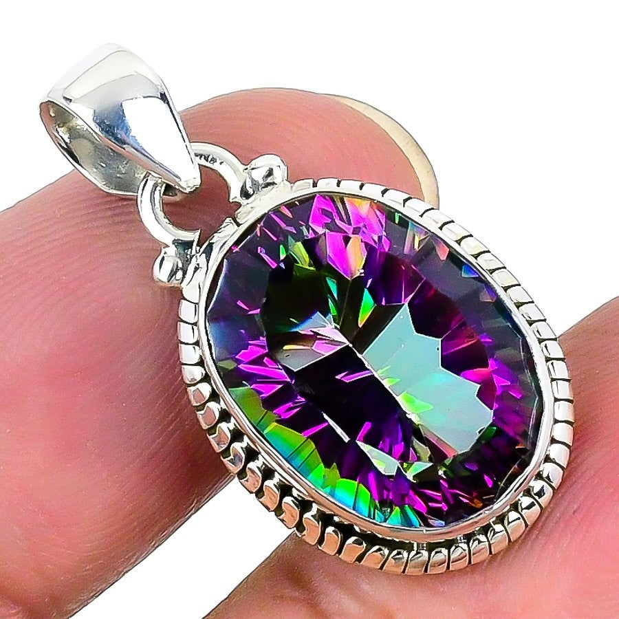 Natural Rainbow Mystic Topaz 925 Sterling Silver Daughter Unique Pendant Jewelry