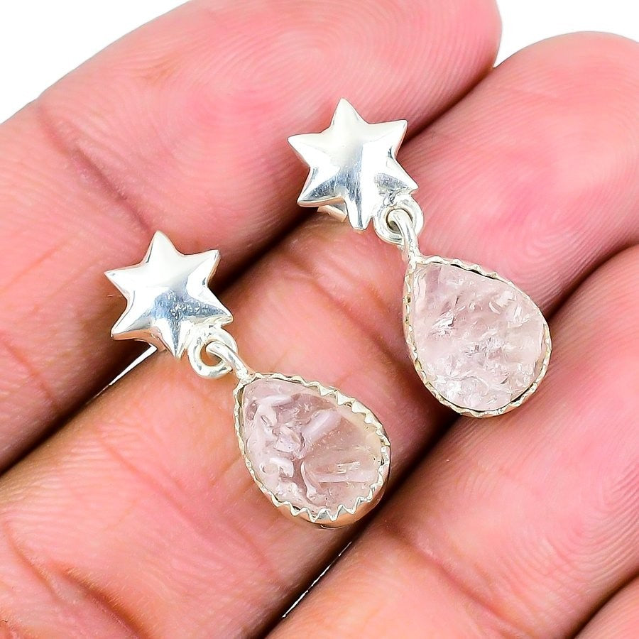 Rose Quartz Stone Mother Dangle Drop Best Sisters Gift Earrings 925�Solid�Silver