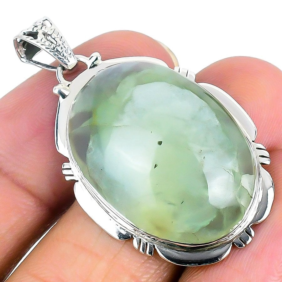 Natural Prehnite Wife Trendy Bezel Wedding Pendant Jewelry 925 Sterling Silver