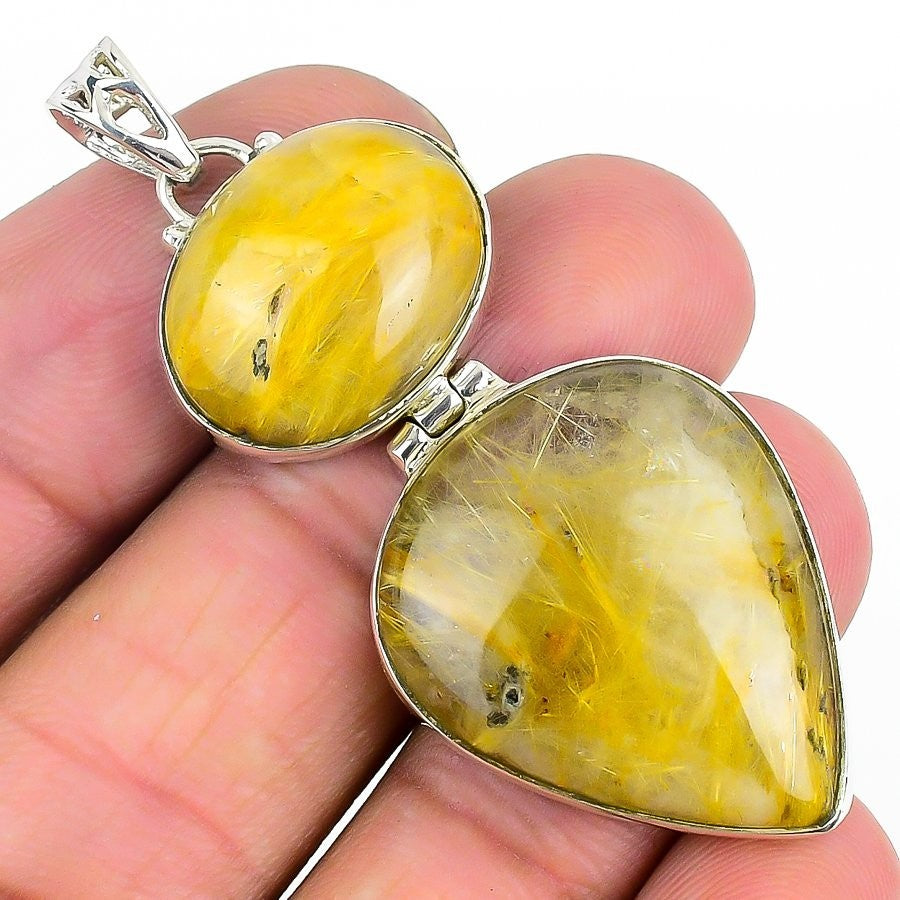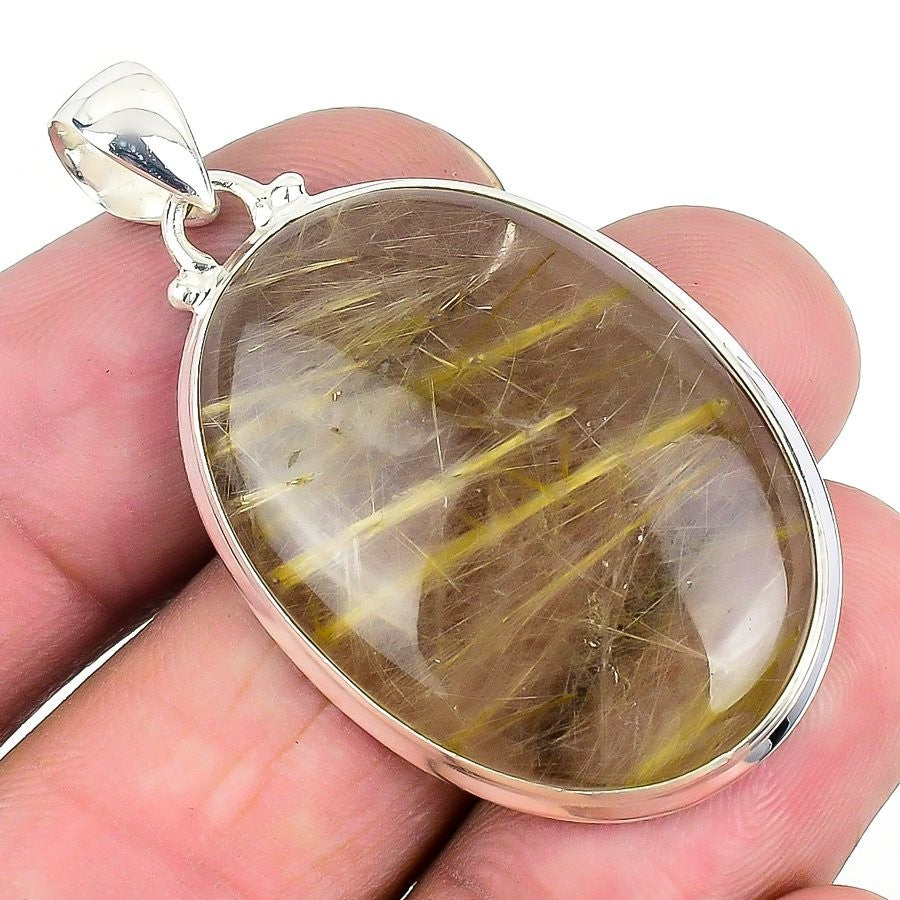 Golden Rutile Stone Handmade Handcrafted Elegant Wife Pendant Jewelry 925 Silver
