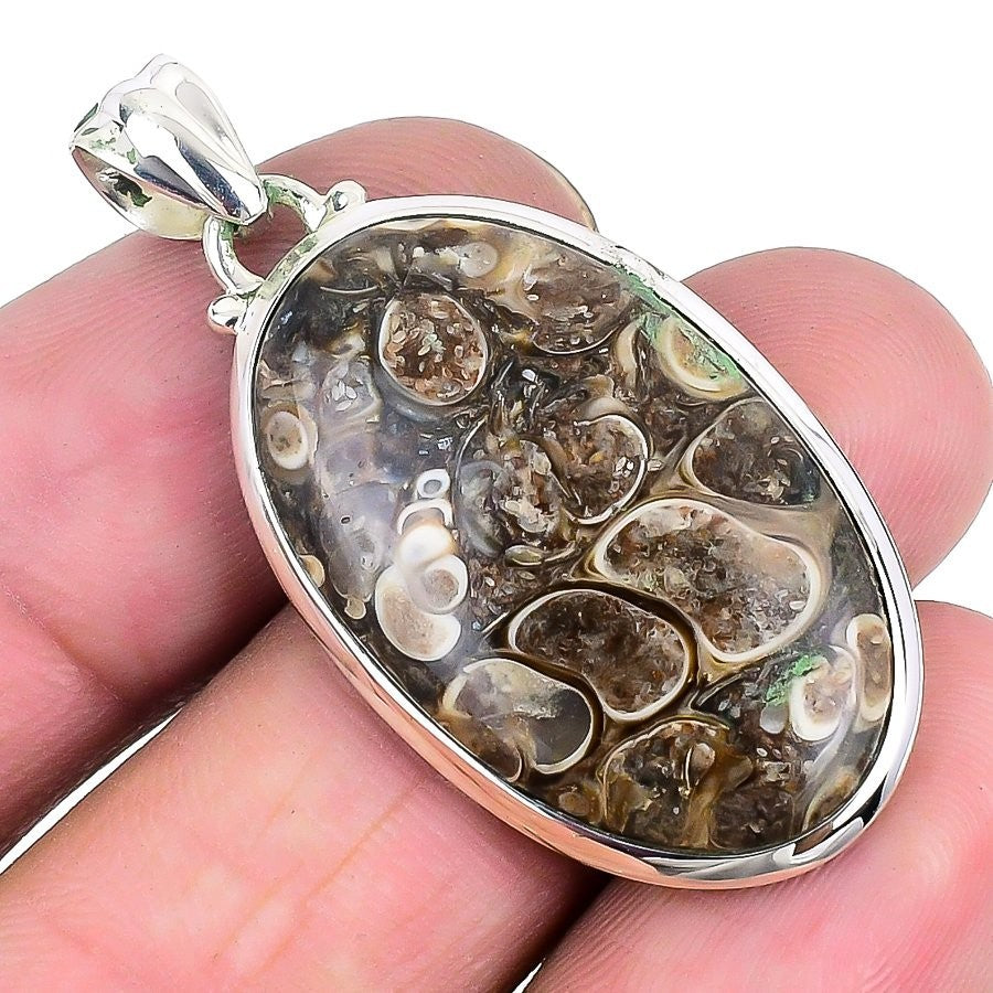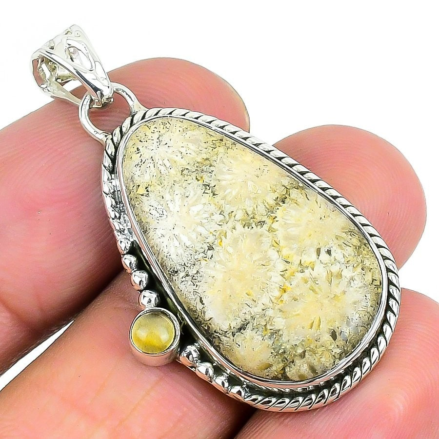 Fossil Coral Stone 925 Sterling Silver Artisan Engagement Trendy Pendant Jewelry