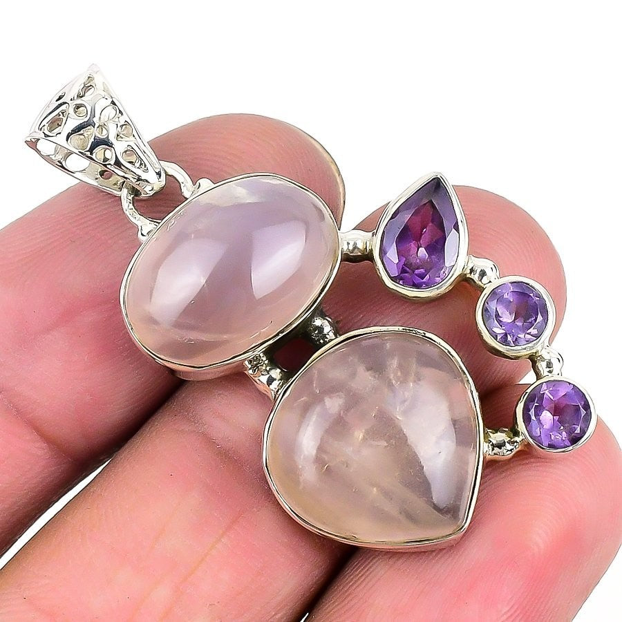 Heart Chakra Rose Quartz Stone Solid Silver Engagement Channel Set New Pendant