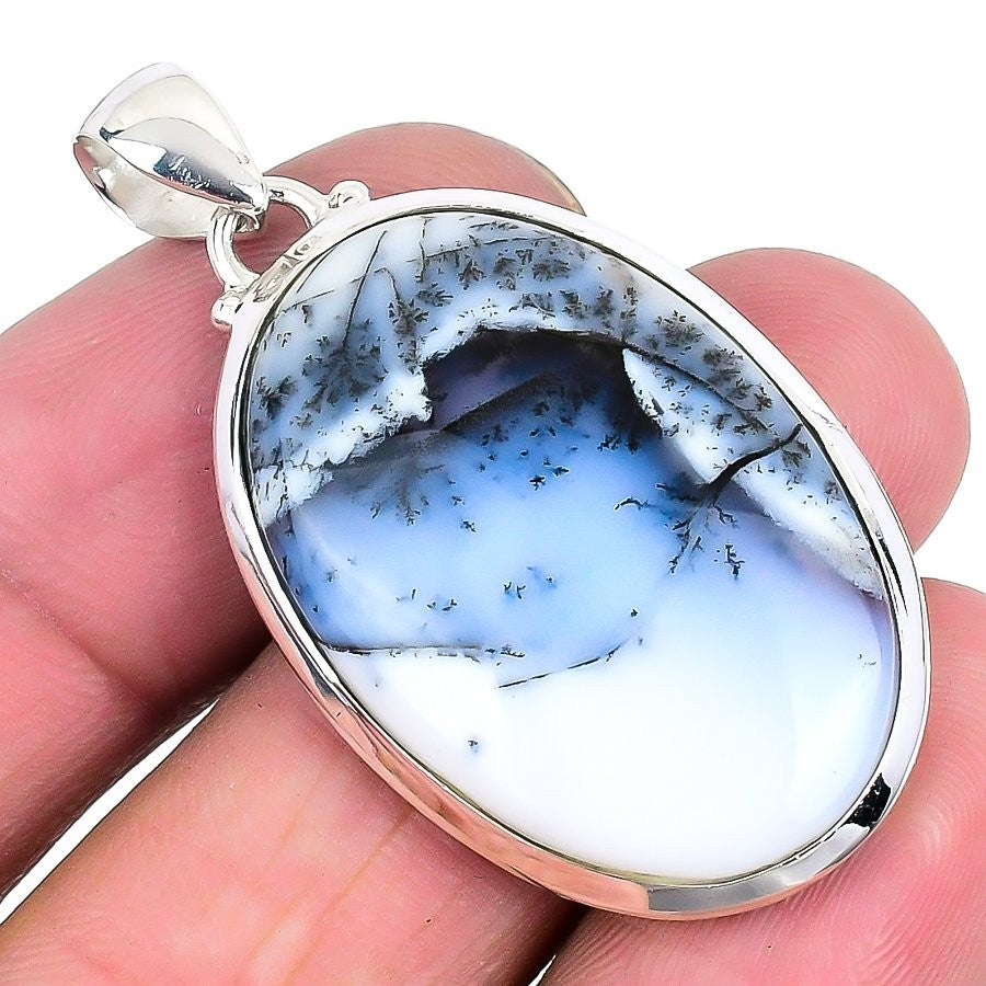 Dendrite Opal Stone 925 Sterling Silver Sister Engagement Unique Pendant Jewelry