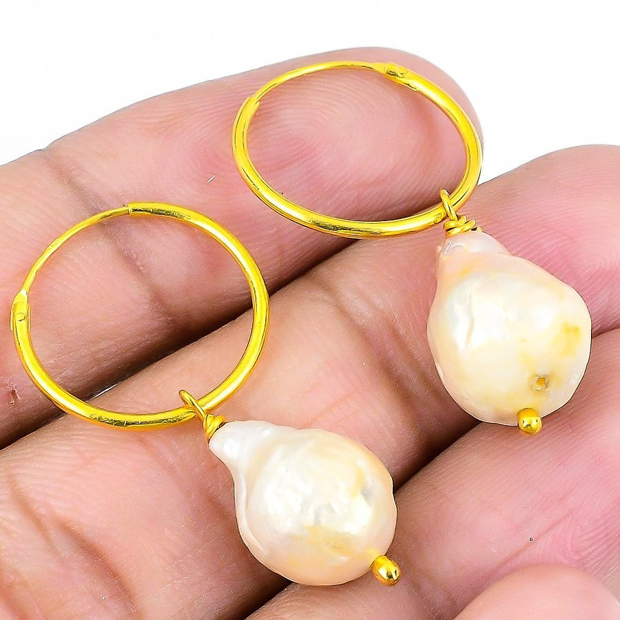 River Pearl Stone Sterling Silver Drop Anniversary Hook Sisters Gift Earrings