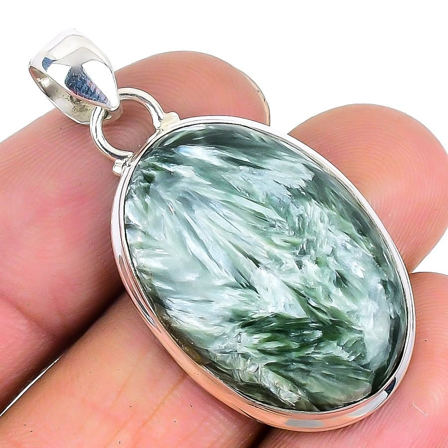 Seraphinite Gemstone Solid Silver Artisan Sister Channel Set New Pendant Jewelry