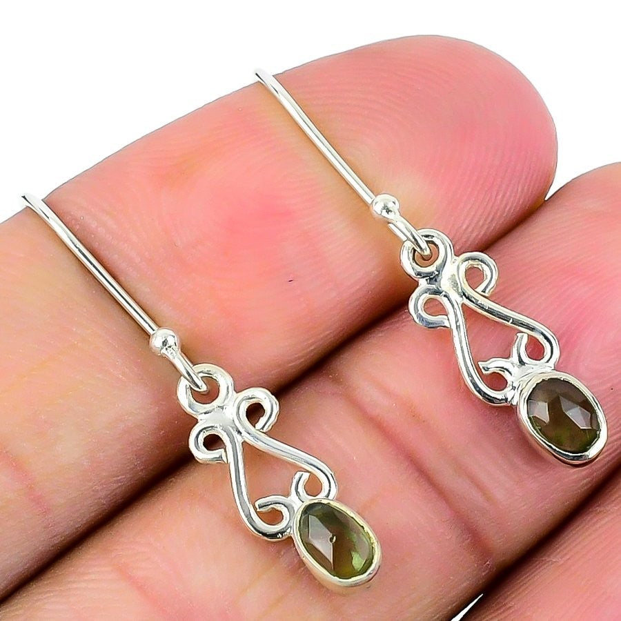 Green Tourmaline Gemstone Sister Dangle Drop Ethnic Earrings Jewelry 925 Silver