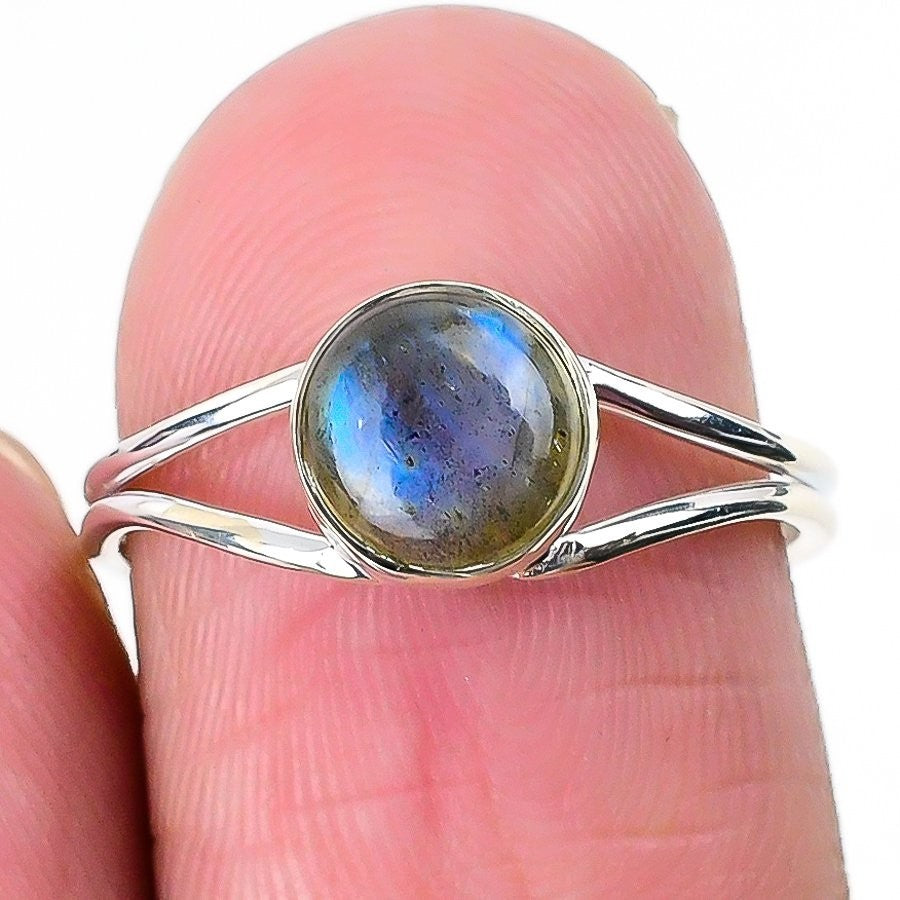 Labradorite Gemstone Solid Sterling Silver Trendy Wife Cluster Boho Ring Size 8