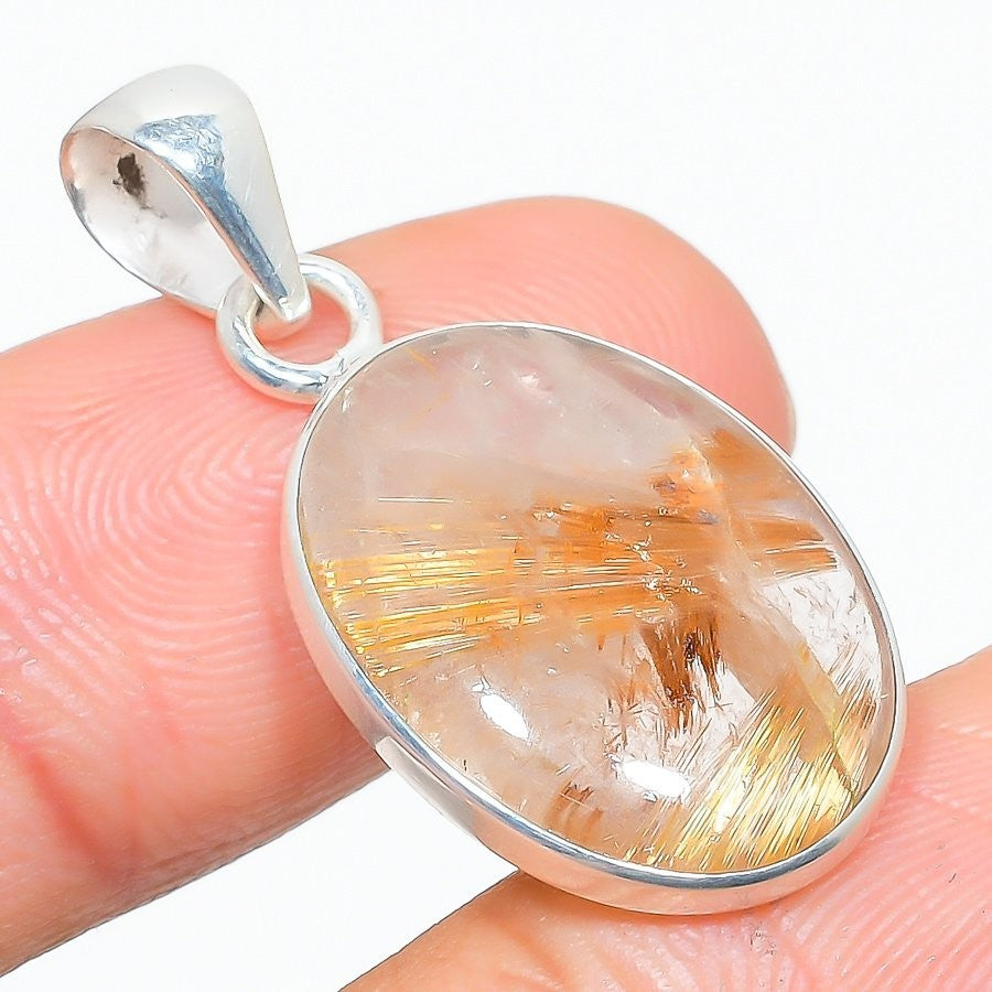 Natural Golden Rutile Engagement Handcrafted Birthday Pendant 925�Solid�Silver