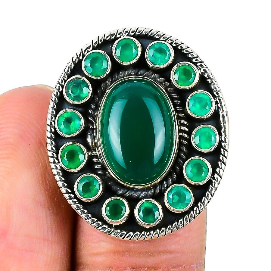 Natural Green Onyx Sterling Silver Statement Sisters Gift Ring Jewelry Size 6.5