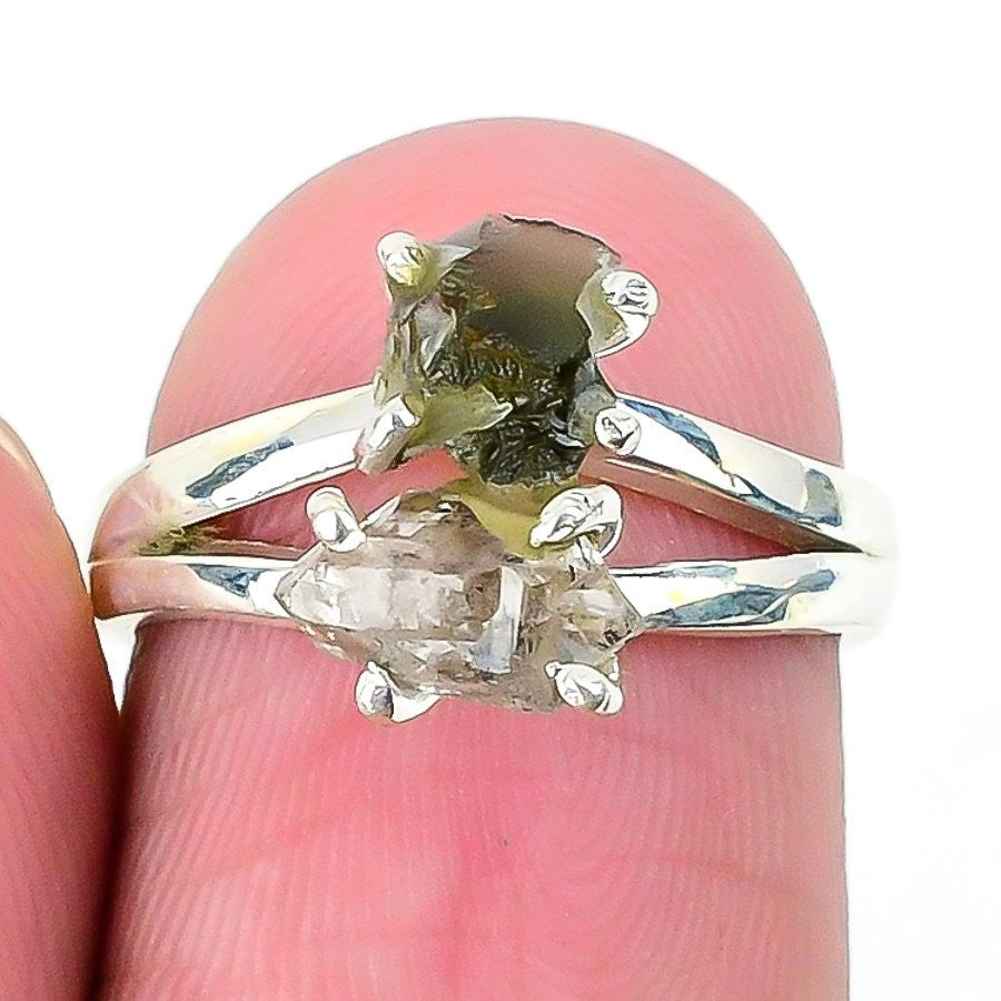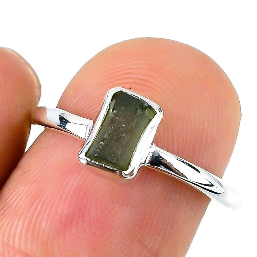 Natural Moldavite Solid Sterling Silver Sisters Day Statement Ring Jewelry US 6