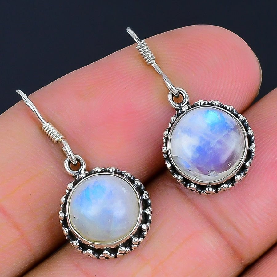 Moonstone Gemstone Solid Sterling Silver June Hook Drop Dangle Earrings Jewelry