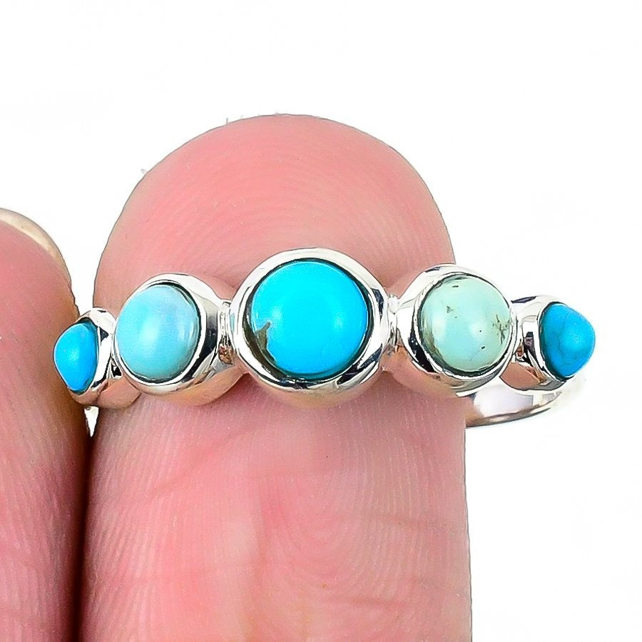 Sleeping Turquoise Gemstone Solid Sterling Silver Wedding Cluster Ring Size 10.5