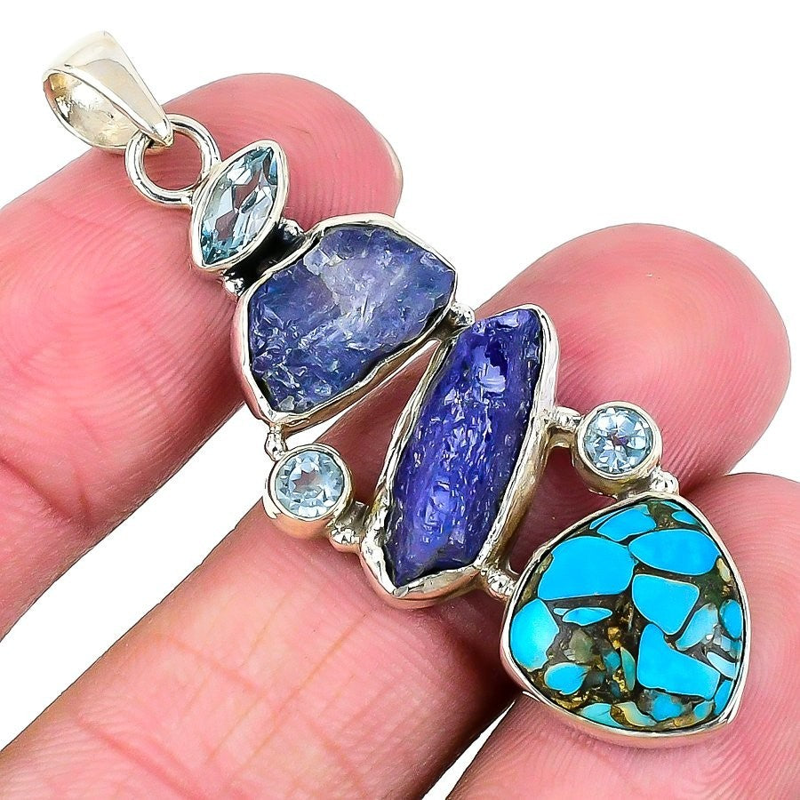 Tanzanite Stone 925�Solid�Silver Ethnic Third Eye Chakra Mother Pendant Jewelry