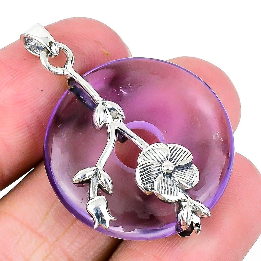 Natural Sage Amethyst Solid Sterling Silver Wedding Crown Chakra Pendant Jewelry