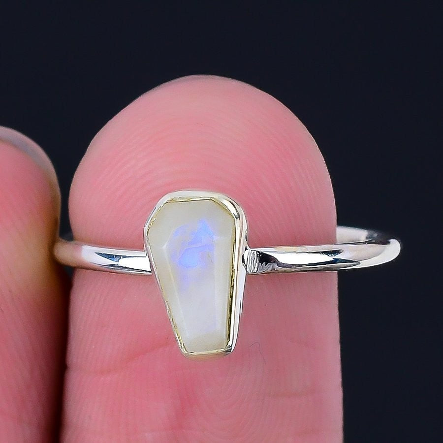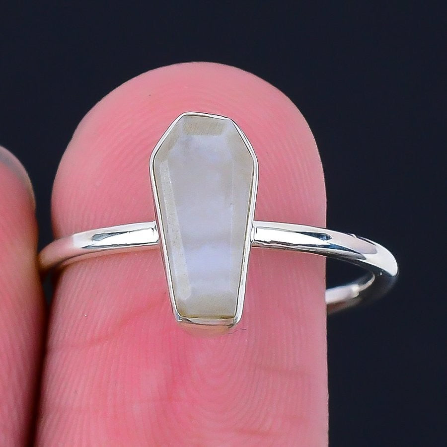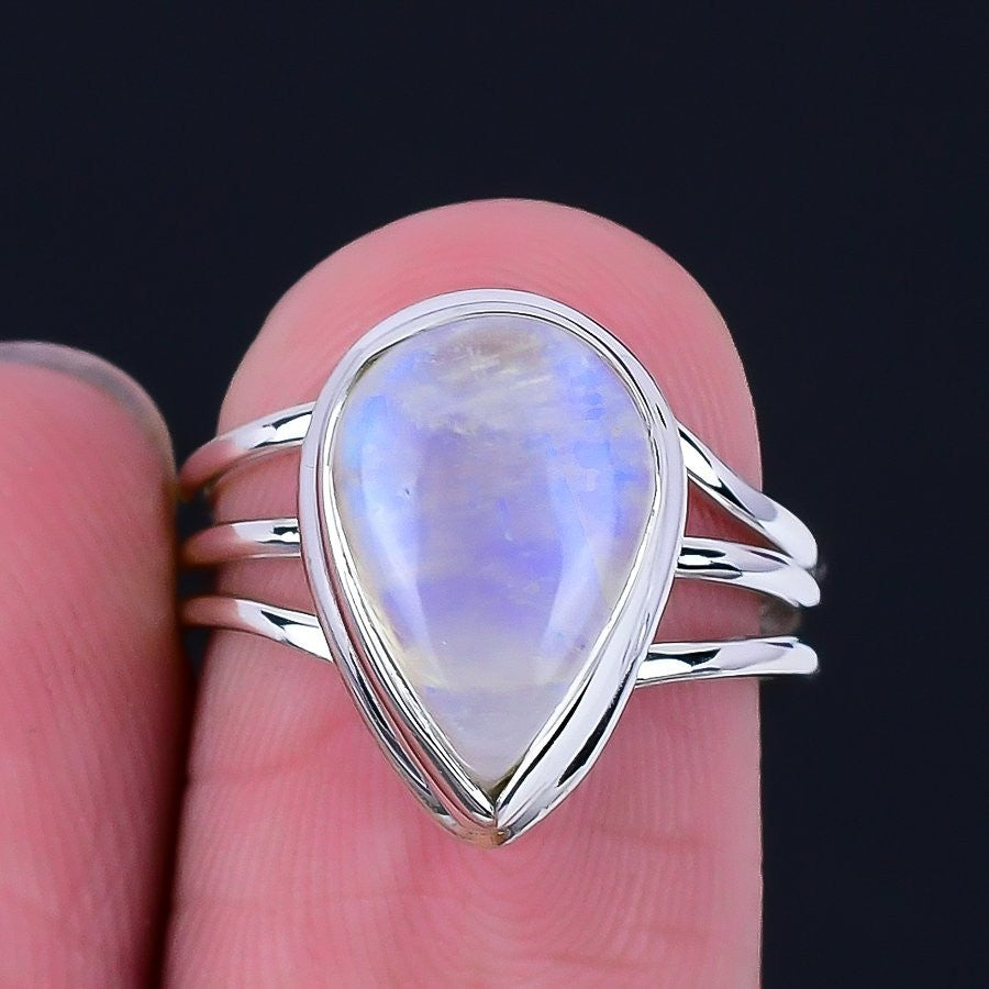 Rainbow Moonstone Stone Solid Sterling Silver Cluster Sister Ring Jewelry Size 5