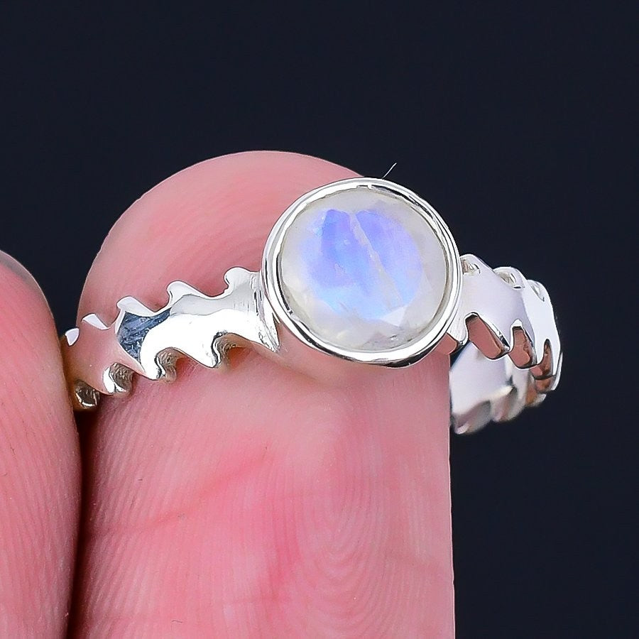 Rainbow Moonstone Stone Solid Sterling Silver Mother Cluster Ethnic Ring Size 6