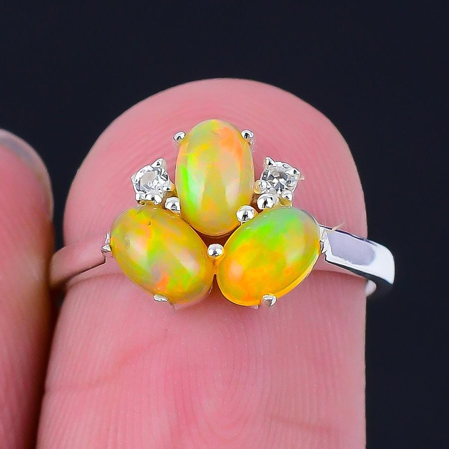 Natural Ethiopian Opal 925�Solid�Silver Cluster Sisters Day Ring Jewelry Size 6
