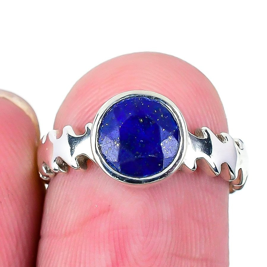 Lapis Lazuli Stone 925 Silver Daughter Cluster Channel Set Ring Jewelry Size 6