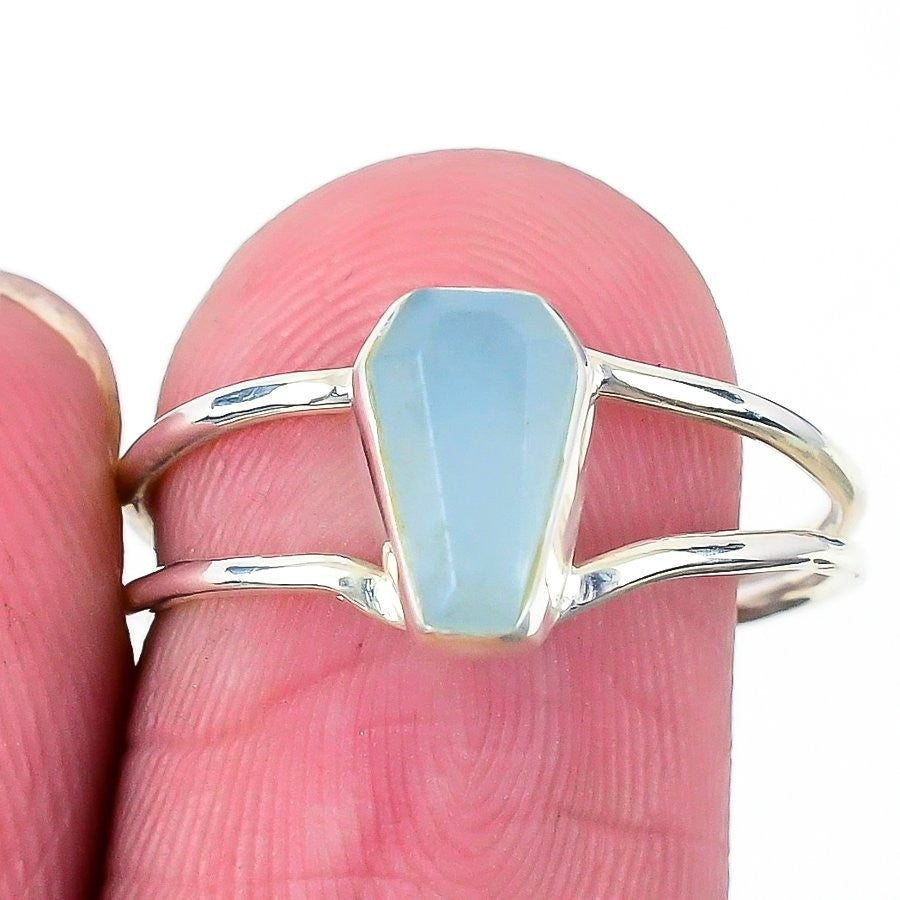 Natural Blue Lace Agate Solid Sterling Silver Wife Cluster Ring Jewelry Size 8.5
