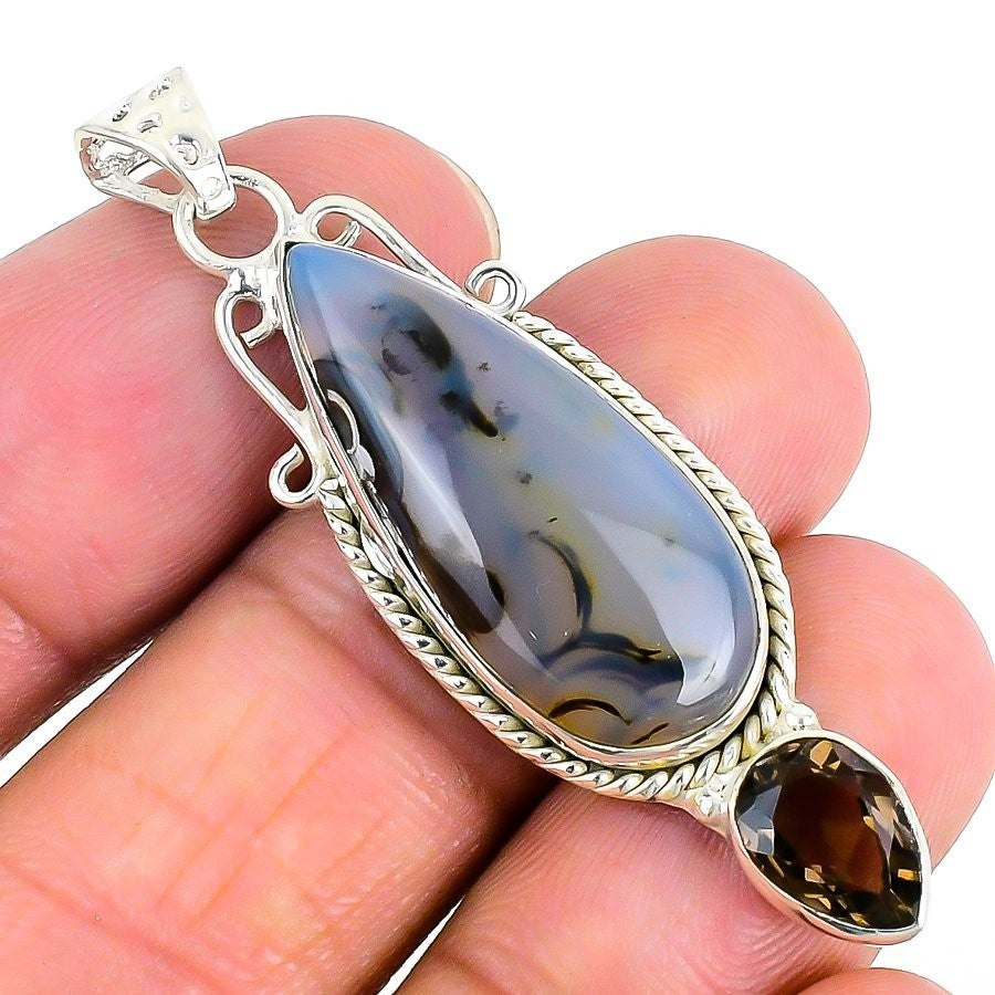Montana Agate Stone Engagement Sisters Gift Mother Boho Pendant 925�Solid�Silver