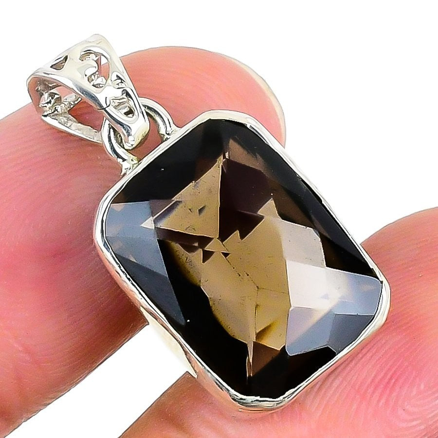 Natural Smoky Topaz Sister Bezel Anniversary Ethnic Boho Pendant Sterling Silver