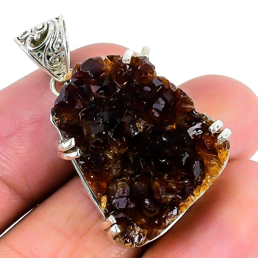 Citrine Druzy Gemstone Sterling Silver Bezel Mother Ethnic Wedding New Pendant