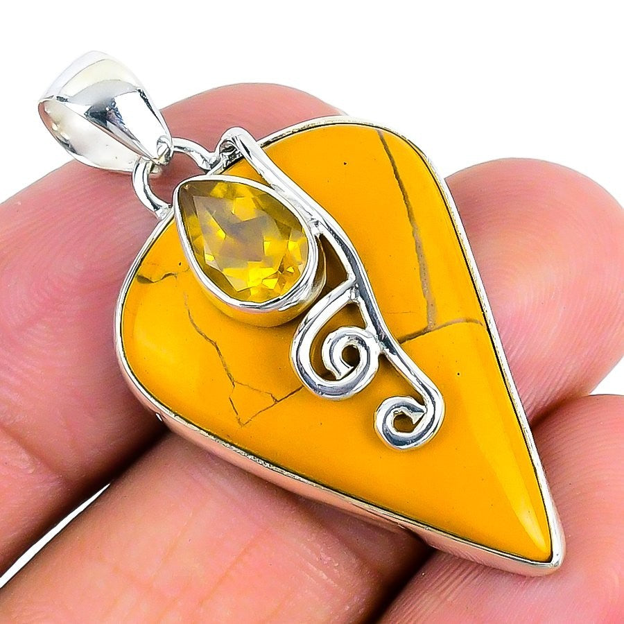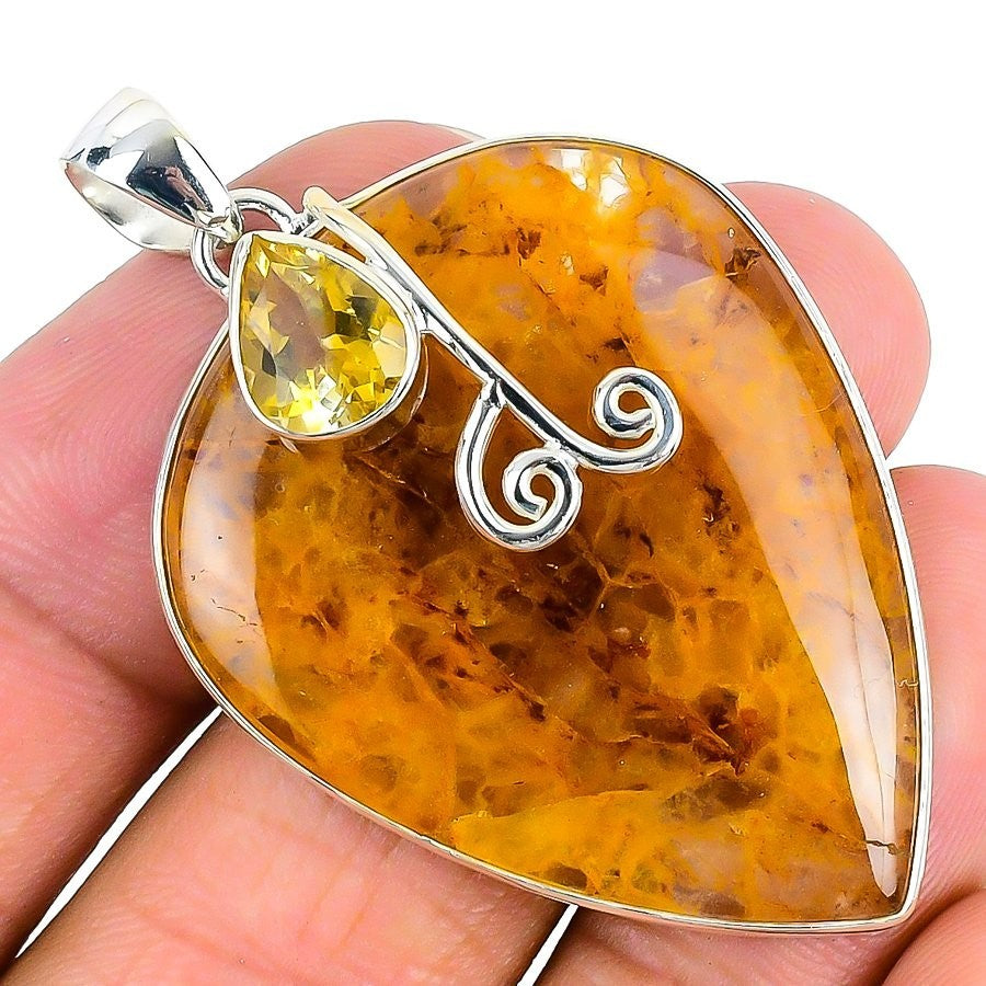Natural Yellow Agate Solid Sterling Silver Engagement Handcrafted Ethnic Pendant