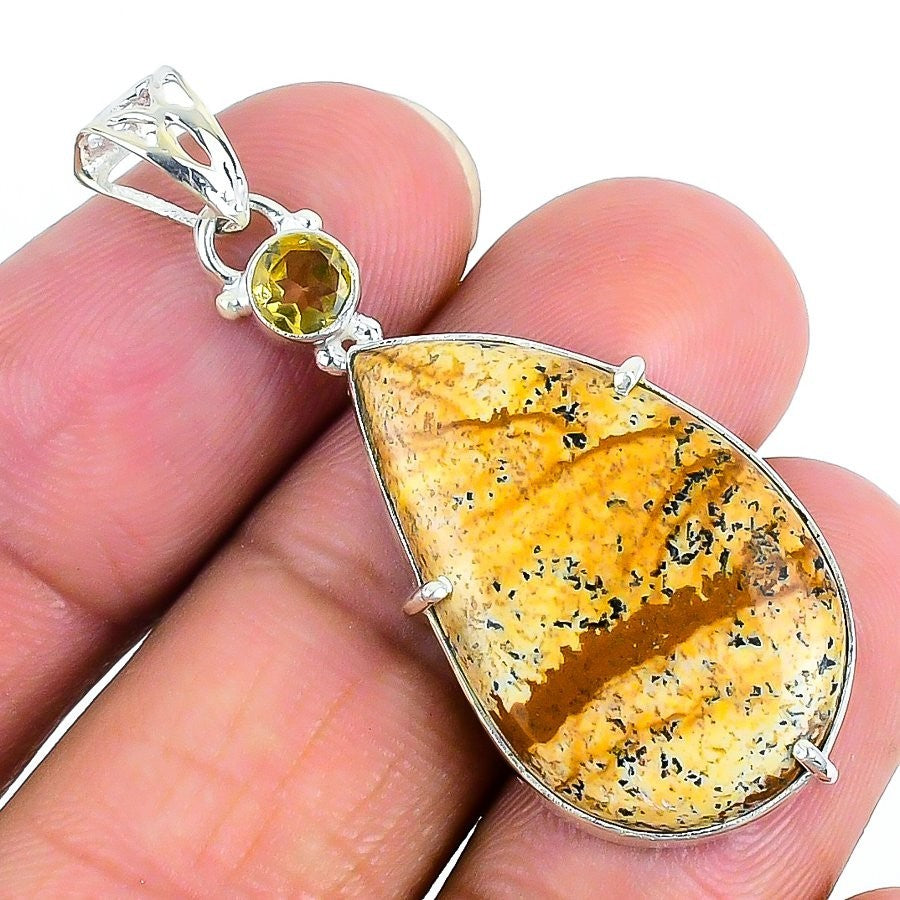 Friendship Day Sale Natural Picture Jasper Art Deco Pendant Jewelry 925 Silver