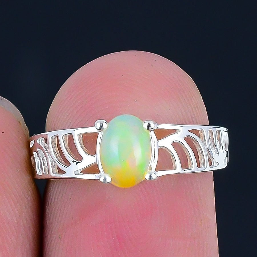 Natural Ethiopian Opal 925�Solid�Silver Boho Statement Friendship Day Ring US 6