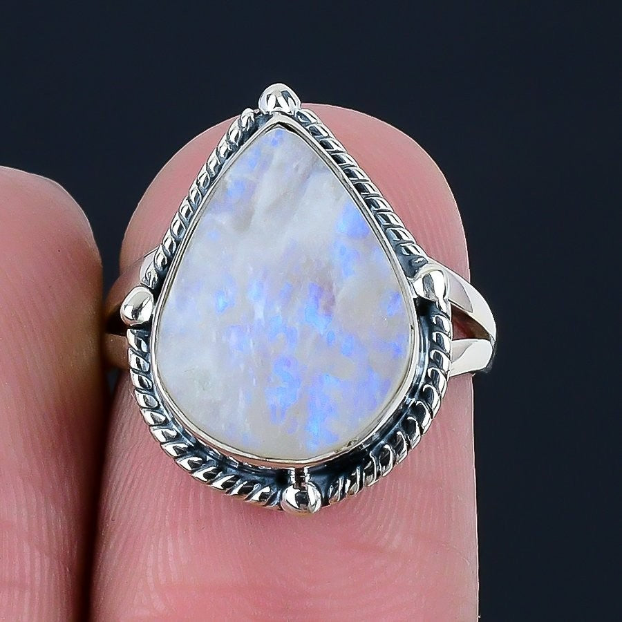 Natural Rainbow Moonstone Statement Wedding Ring Jewelry Size 7 Sterling Silver