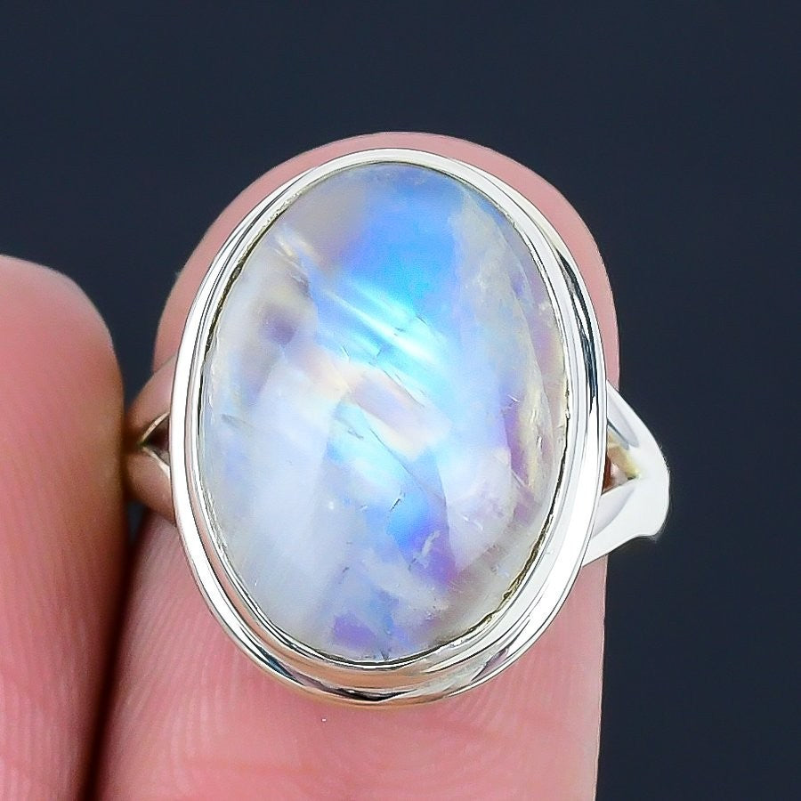 Natural Rainbow Moonstone Sterling Silver Handcrafted Mother Statement Ring US 6