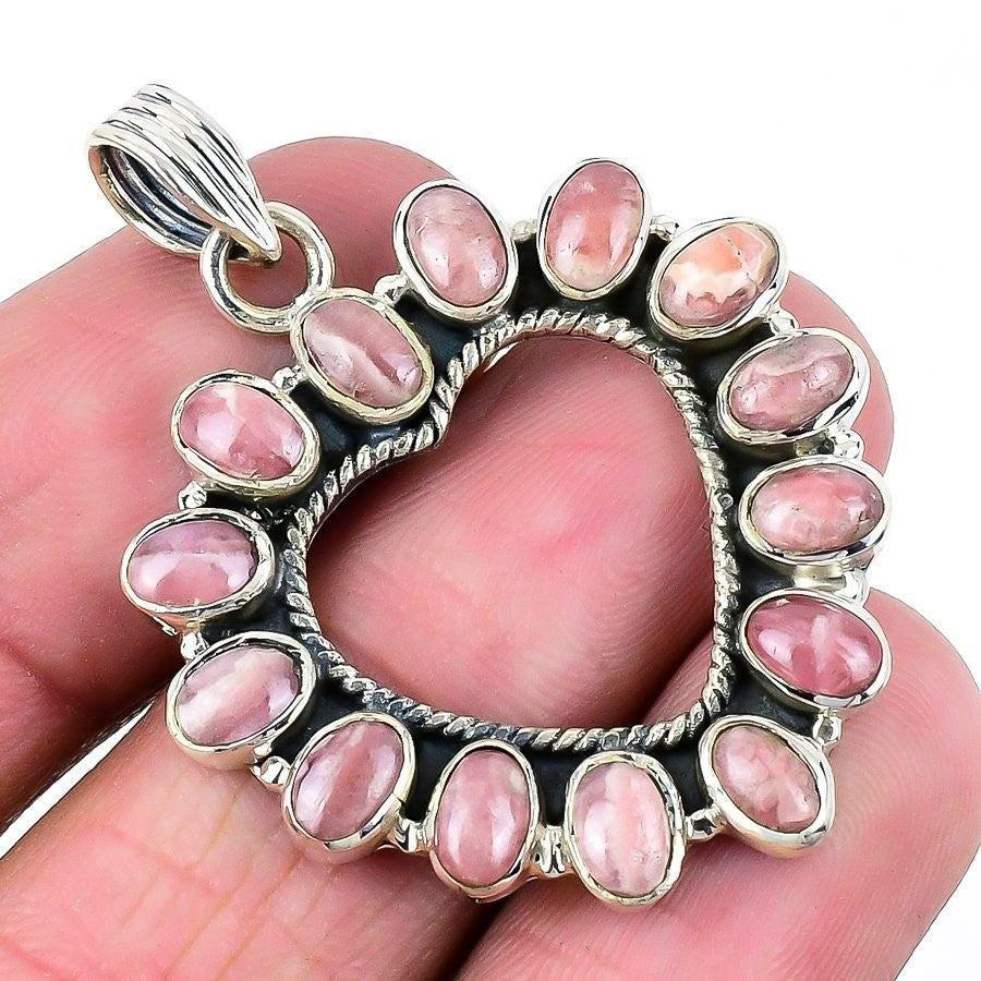 Heart Chakra Rhodochrosite Gemstone 925 Sterling Silver Ethnic Wedding Pendant